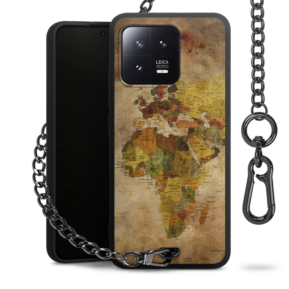 - Mattschwarze Handyhülle mit Metallkette