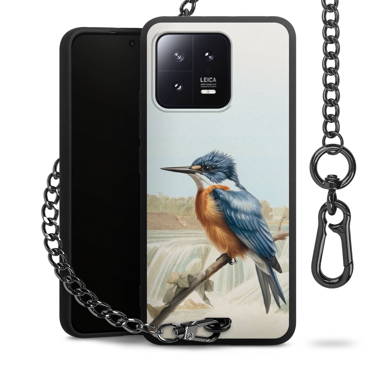 • Mattschwarze Handyhülle mit Metallkette
