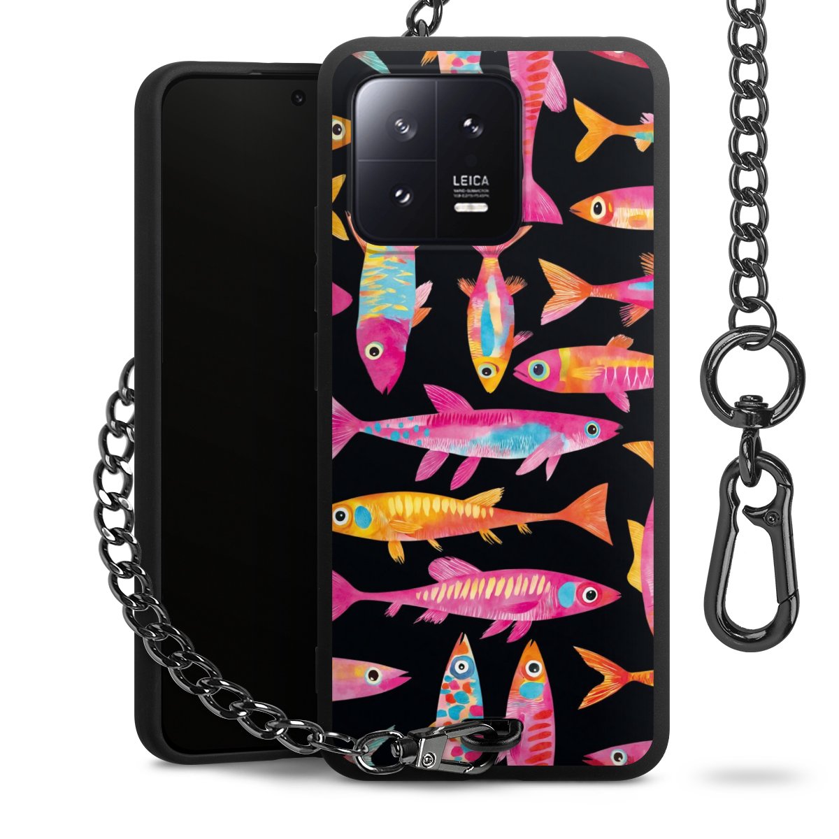 • Mattschwarze Handyhülle mit Metallkette