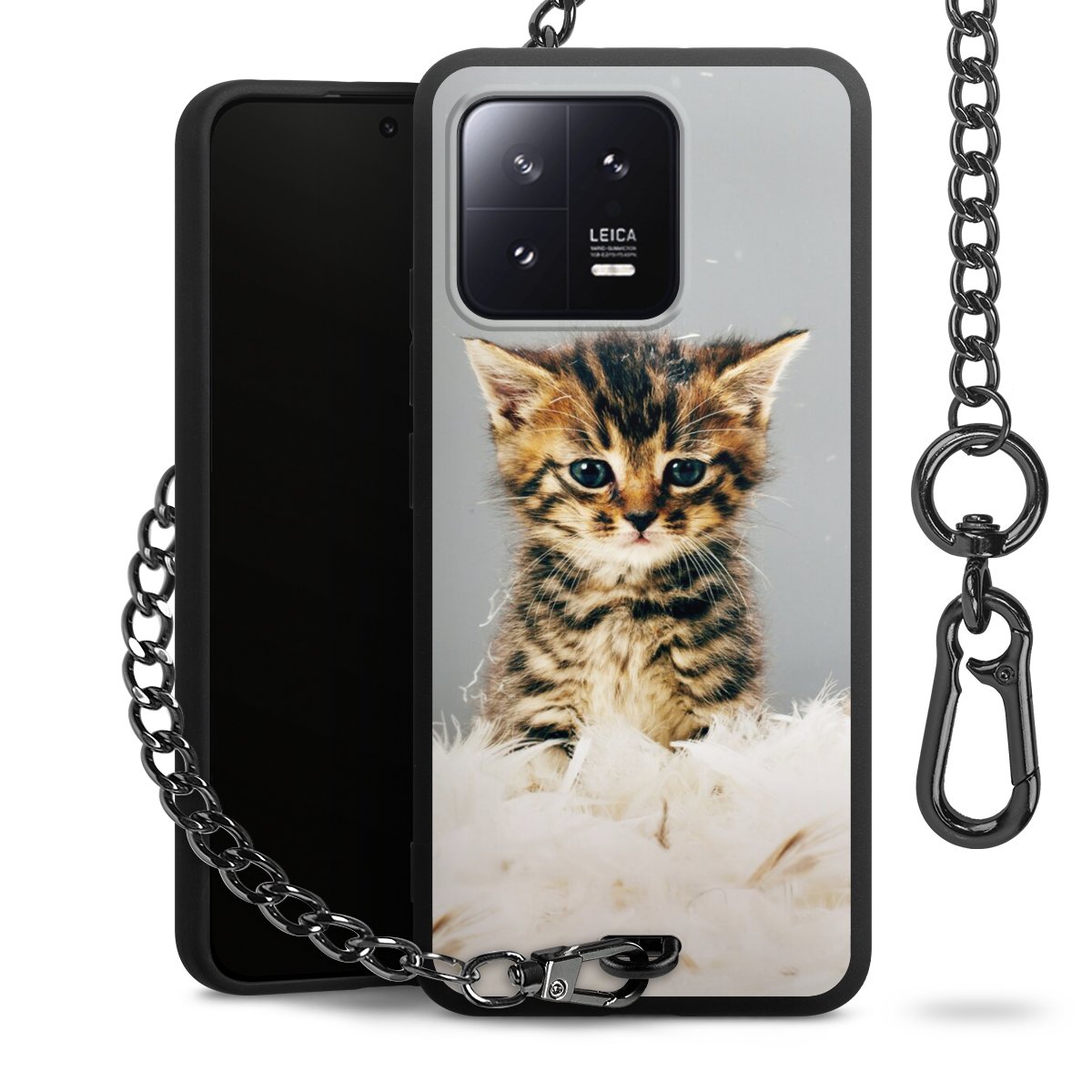 • Mattschwarze Handyhülle mit Metallkette