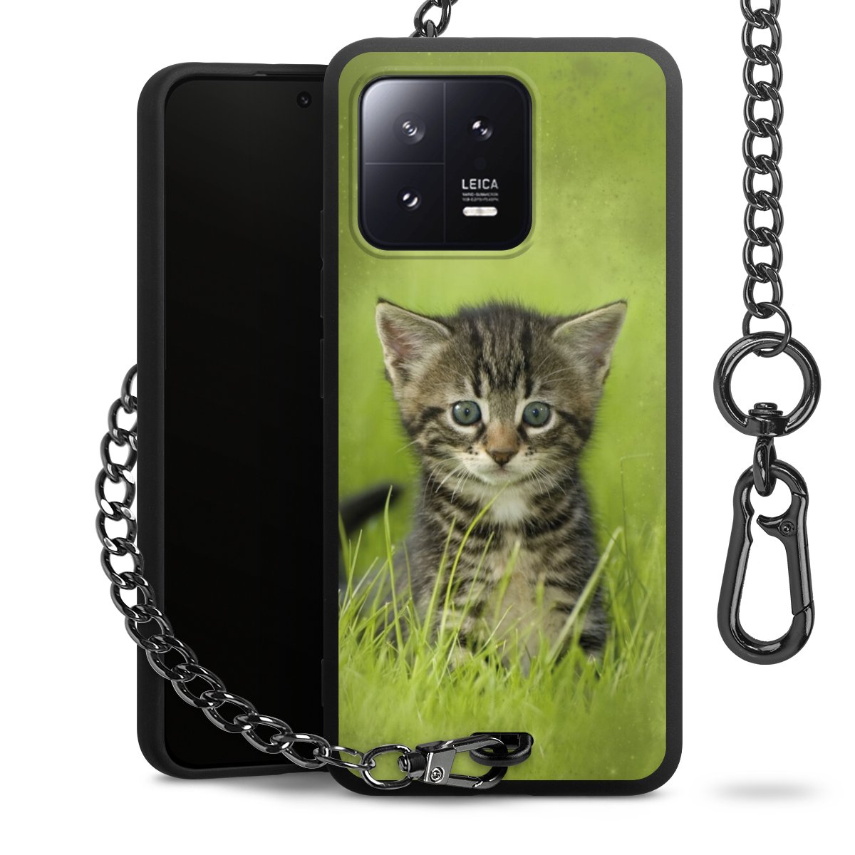 - Mattschwarze Handyhülle mit Metallkette