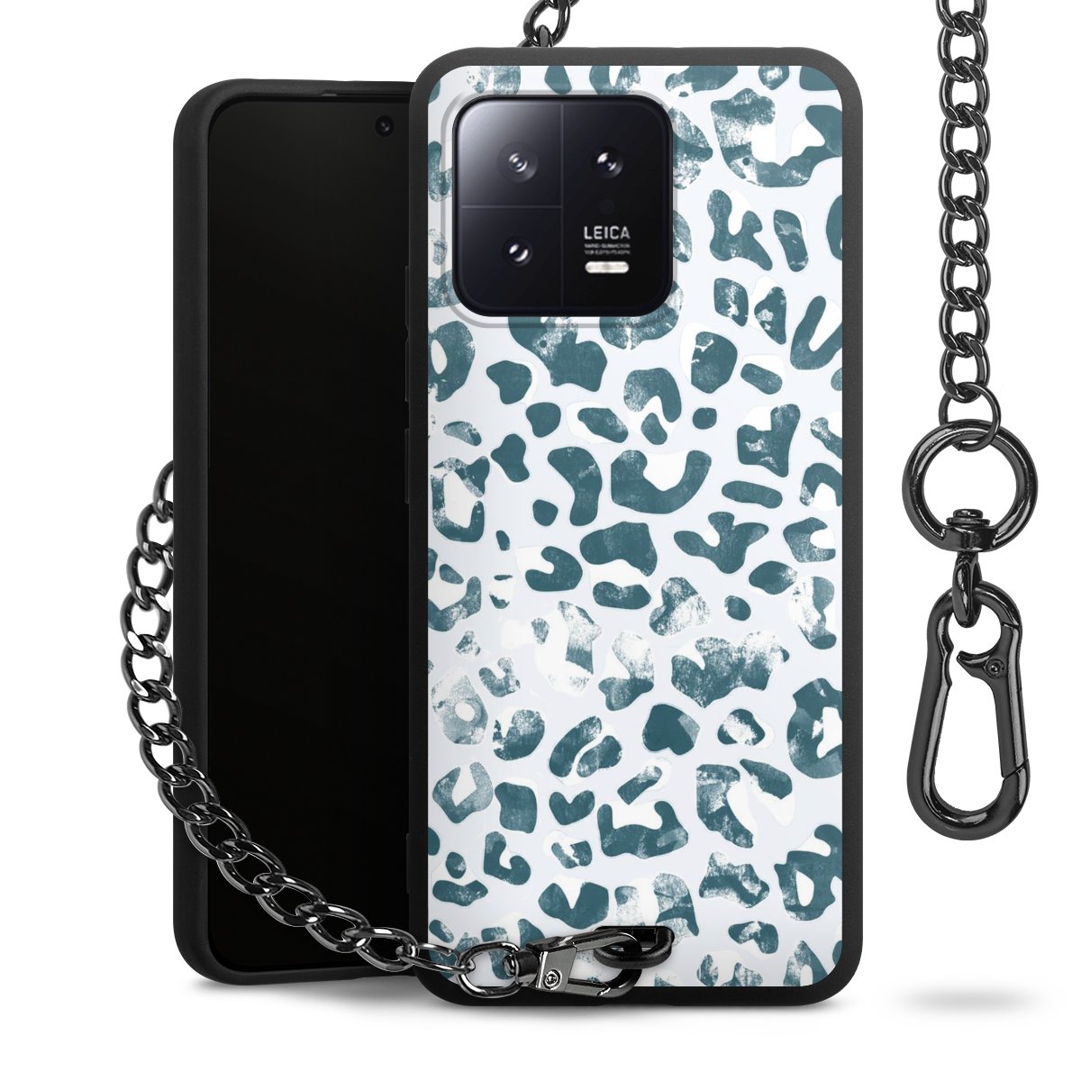 • Mattschwarze Handyhülle mit Metallkette