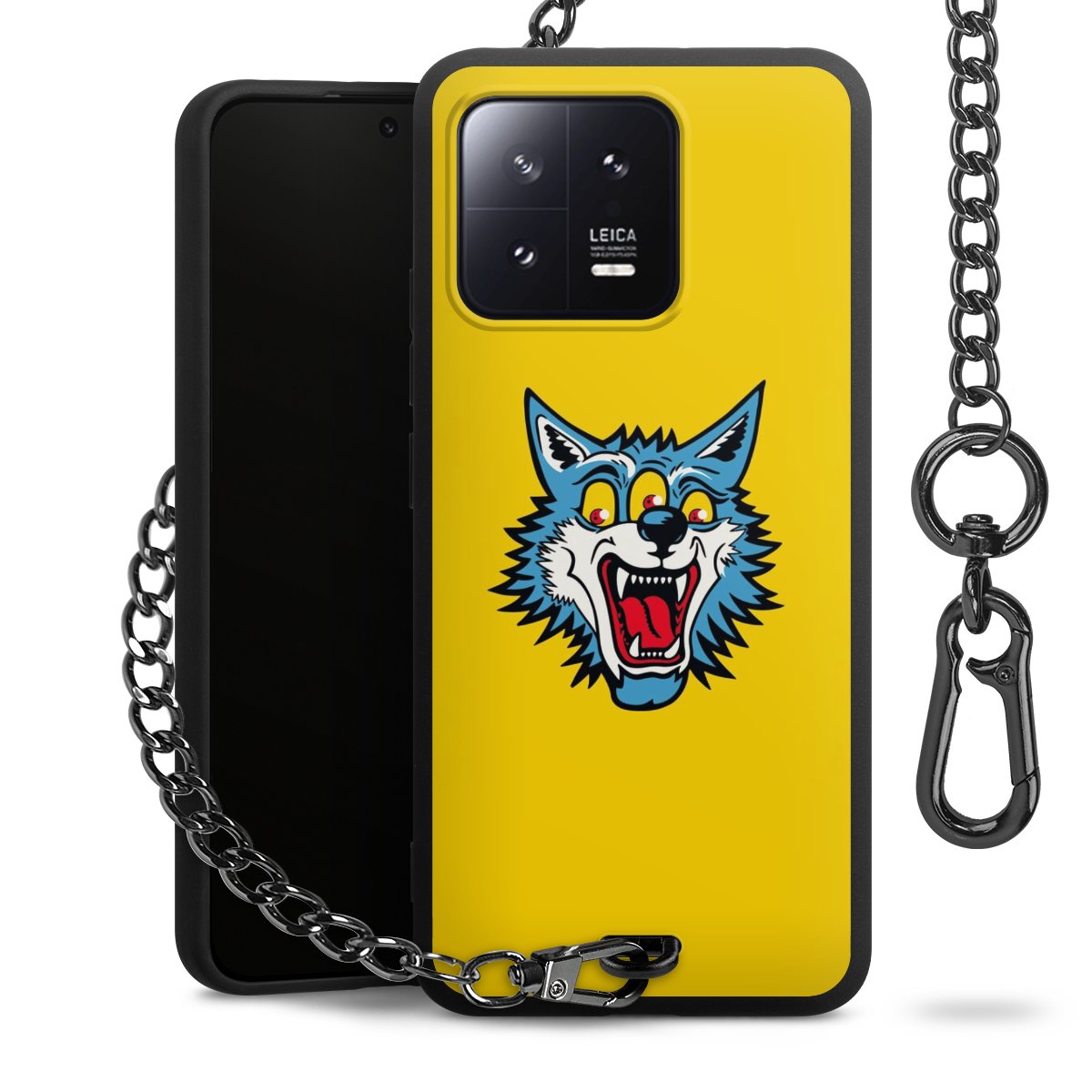 Die Handyhülle verfügt über eine mittig am unteren Rand platzierte Öse, an der die Metallkette stabil befestigt ist. Bestelle die Hülle einfach für Dein Smartphone-Modell, dann passt sie wie angegossen und Du brauchst sie bloß einmal anzudrücken. Handy in die Tasche, Karabiner an den Hosenbund – schon kann die Party starten.