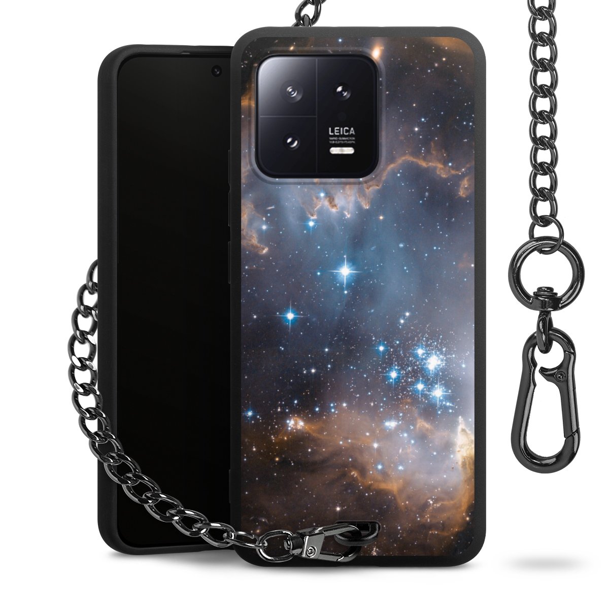 - Mattschwarze Handyhülle mit Metallkette