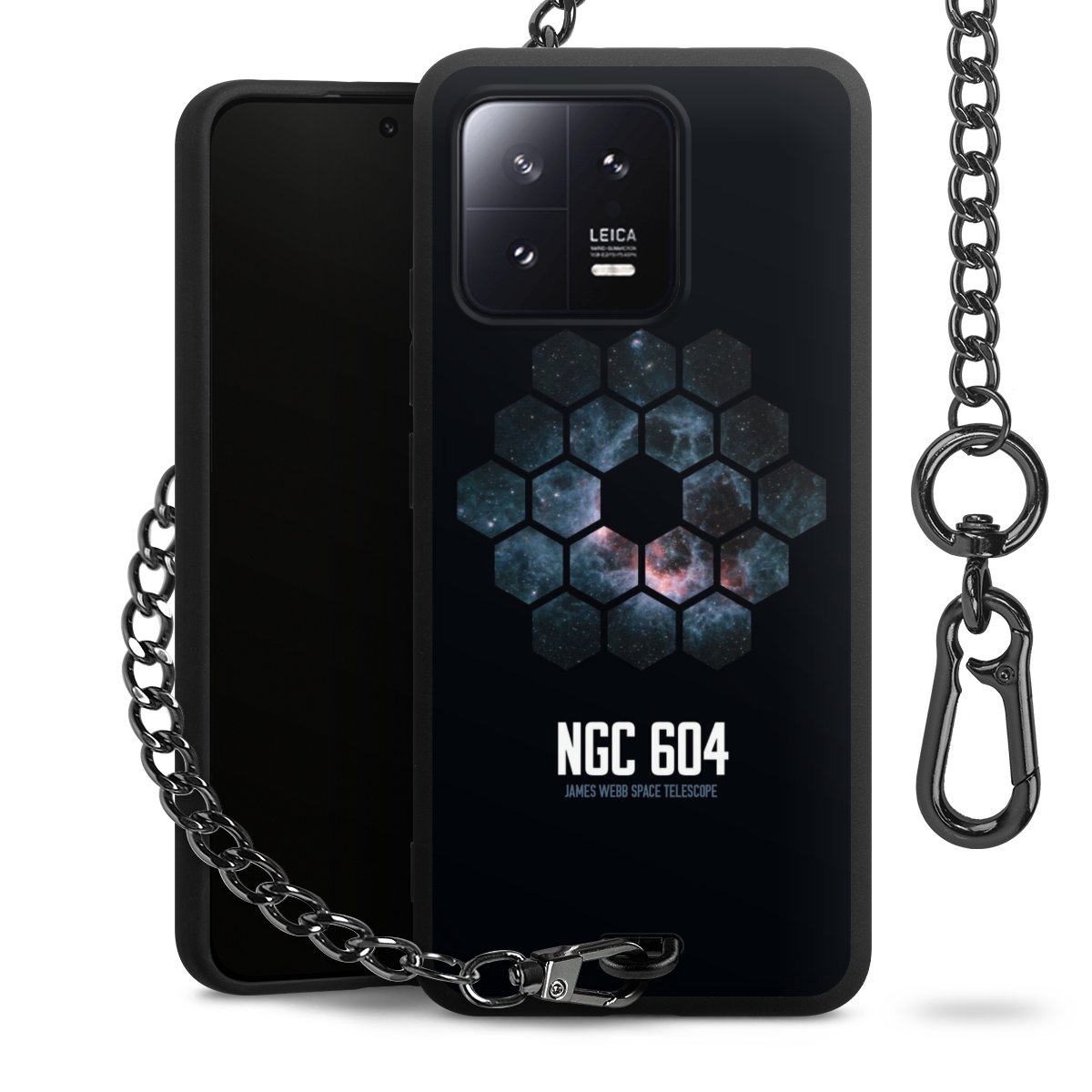 - Mattschwarze Handyhülle mit Metallkette