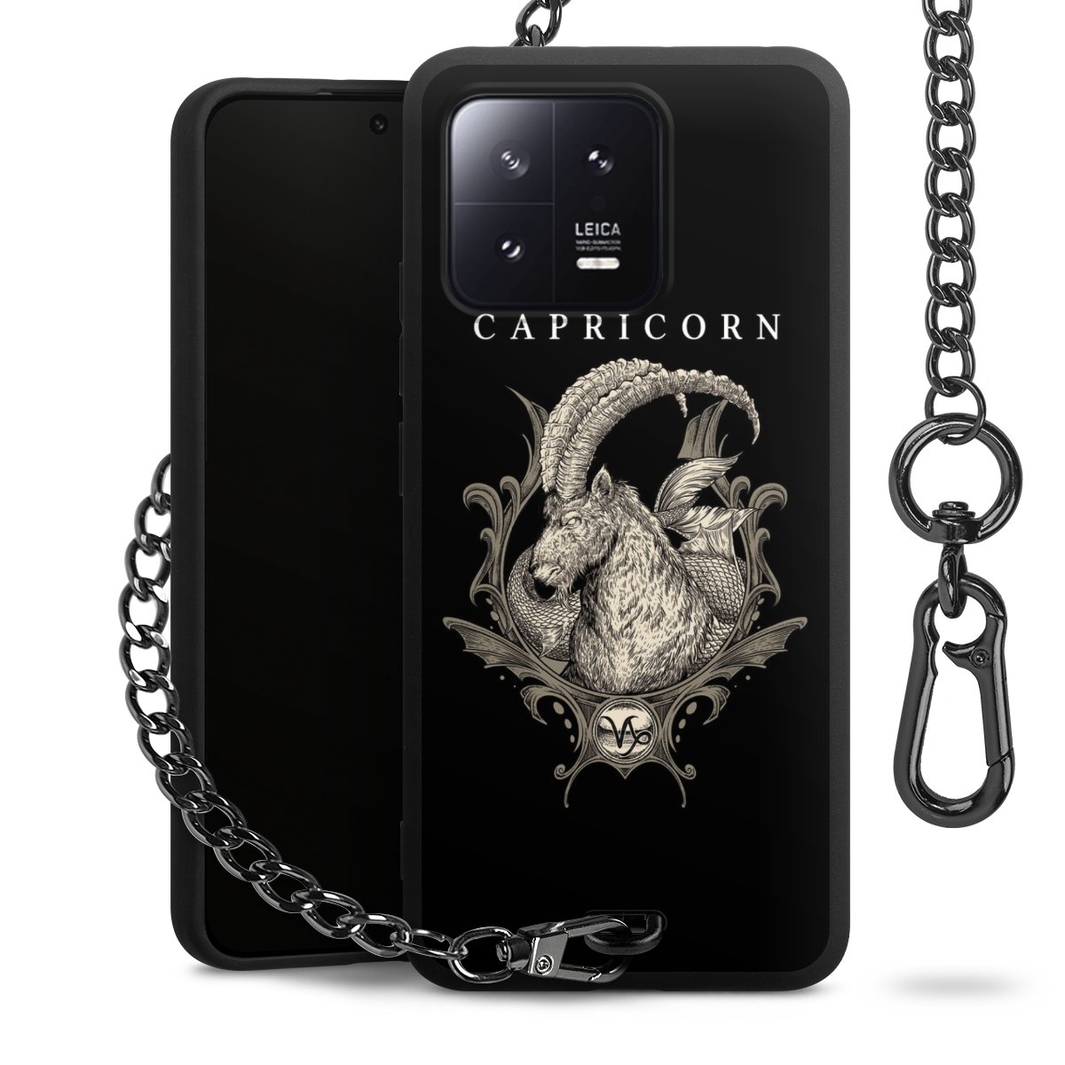• Mattschwarze Handyhülle mit Metallkette
