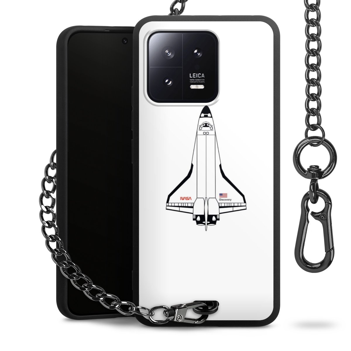 - Mattschwarze Handyhülle mit Metallkette