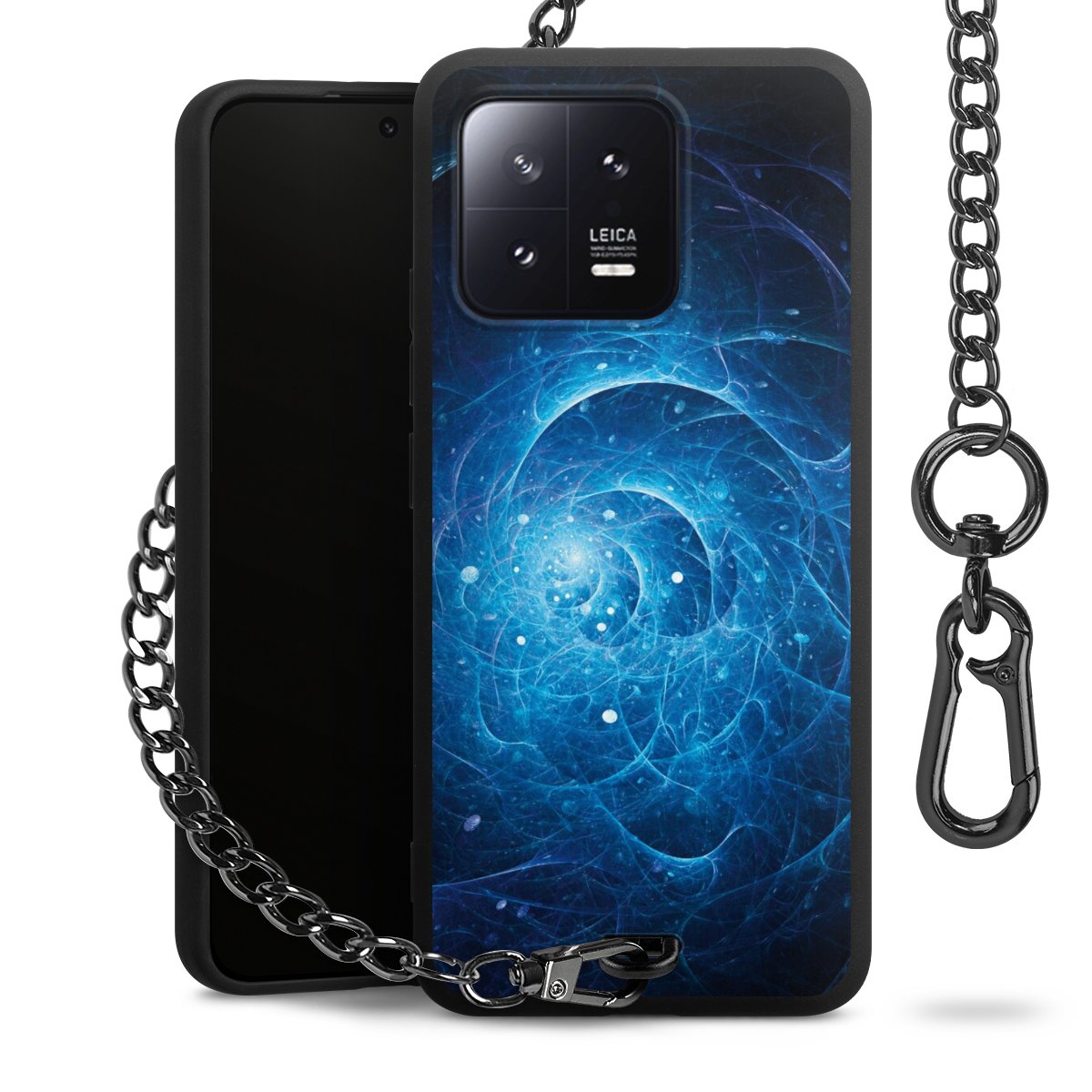 - Mattschwarze Handyhülle mit Metallkette