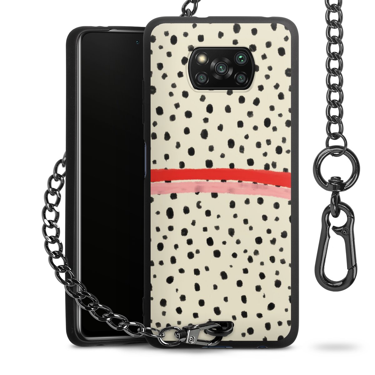 • Mattschwarze Handyhülle mit Metallkette
