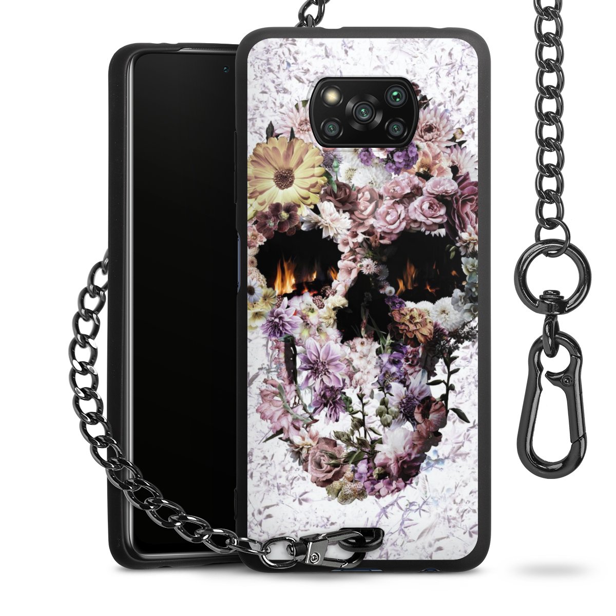 Die mattschwarze Silikon-Handyhülle besteht aus robustem TPU (thermoplastisches Polyurethan). Sie ist flexibel und schützt Dein Smartphone vor Stößen und Kratzern. Die Kette sowie der Karabinerhaken sind aus Metall in Gunmetal-Optik gefertigt. Für dieses Produkt kommen ausschließlich TÜV-geprüfte Materialien zum Einsatz.
