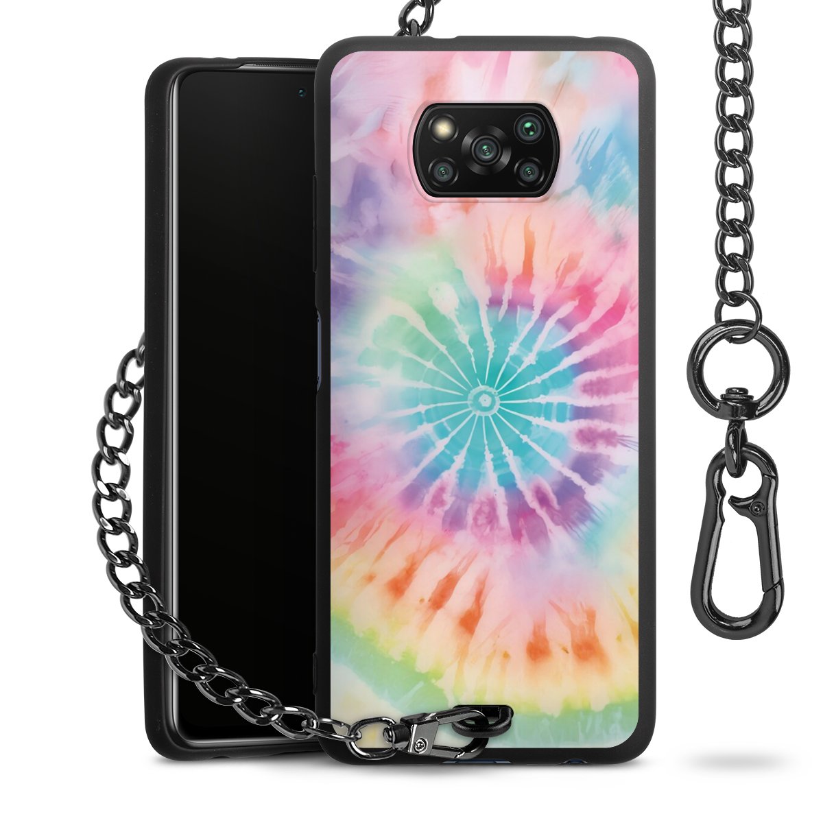 Die mattschwarze Silikon-Handyhülle besteht aus robustem TPU (thermoplastisches Polyurethan). Sie ist flexibel und schützt Dein Smartphone vor Stößen und Kratzern. Die Kette sowie der Karabinerhaken sind aus Metall in Gunmetal-Optik gefertigt. Für dieses Produkt kommen ausschließlich TÜV-geprüfte Materialien zum Einsatz.