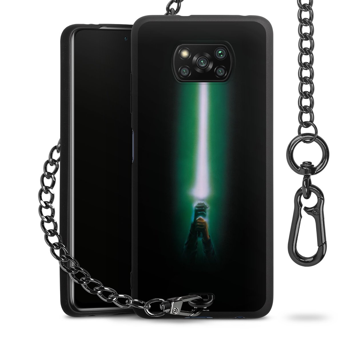 Die mattschwarze Silikon-Handyhülle besteht aus robustem TPU (thermoplastisches Polyurethan). Sie ist flexibel und schützt Dein Smartphone vor Stößen und Kratzern. Die Kette sowie der Karabinerhaken sind aus Metall in Gunmetal-Optik gefertigt. Für dieses Produkt kommen ausschließlich TÜV-geprüfte Materialien zum Einsatz.