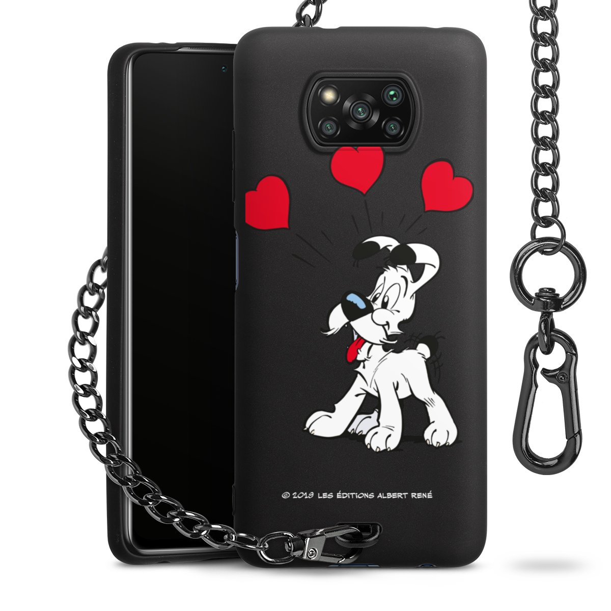 Die Handyhülle verfügt über eine mittig am unteren Rand platzierte Öse, an der die Metallkette stabil befestigt ist. Bestelle die Hülle einfach für Dein Smartphone-Modell, dann passt sie wie angegossen und Du brauchst sie bloß einmal anzudrücken. Handy in die Tasche, Karabiner an den Hosenbund – schon kann die Party starten.
