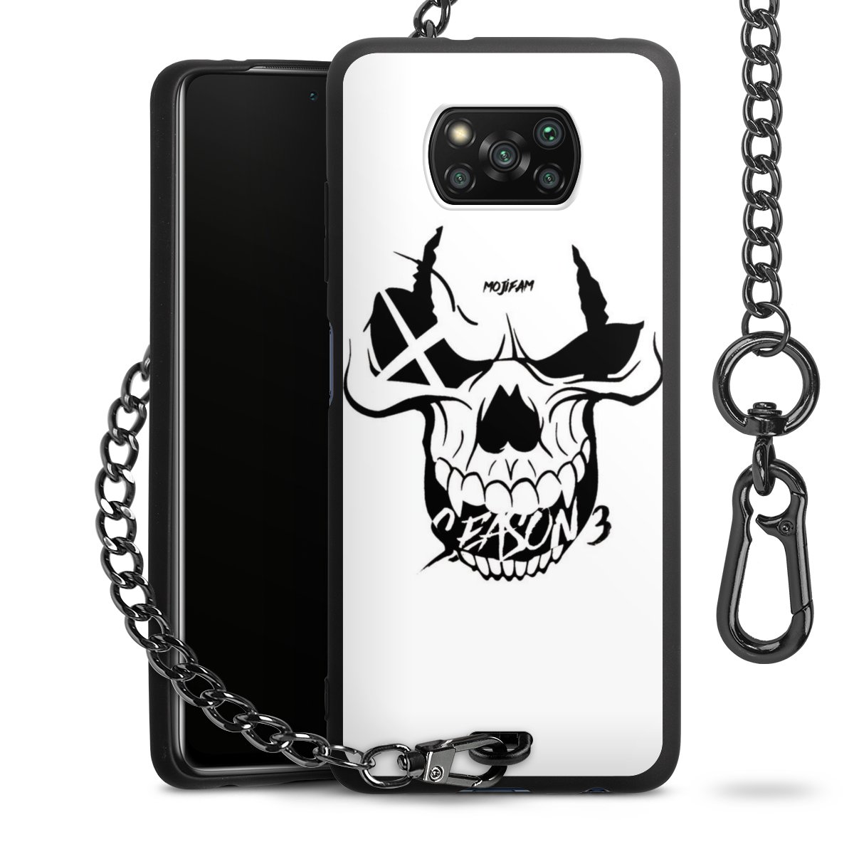 Die mattschwarze Silikon-Handyhülle besteht aus robustem TPU (thermoplastisches Polyurethan). Sie ist flexibel und schützt Dein Smartphone vor Stößen und Kratzern. Die Kette sowie der Karabinerhaken sind aus Metall in Gunmetal-Optik gefertigt. Für dieses Produkt kommen ausschließlich TÜV-geprüfte Materialien zum Einsatz.