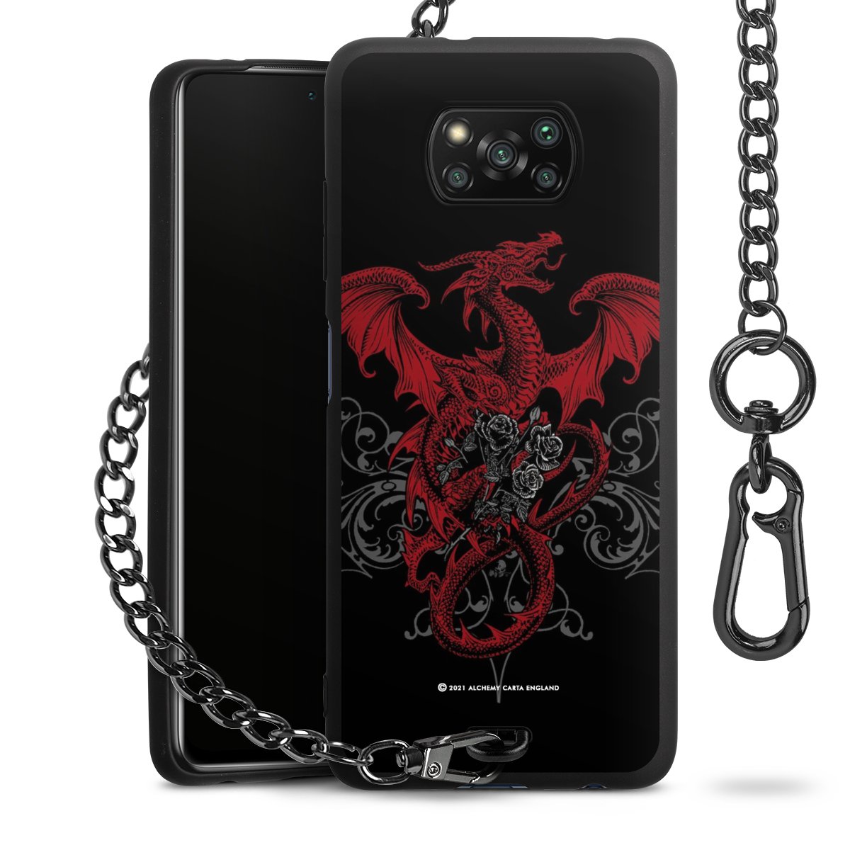 Die mattschwarze Silikon-Handyhülle besteht aus robustem TPU (thermoplastisches Polyurethan). Sie ist flexibel und schützt Dein Smartphone vor Stößen und Kratzern. Die Kette sowie der Karabinerhaken sind aus Metall in Gunmetal-Optik gefertigt. Für dieses Produkt kommen ausschließlich TÜV-geprüfte Materialien zum Einsatz.