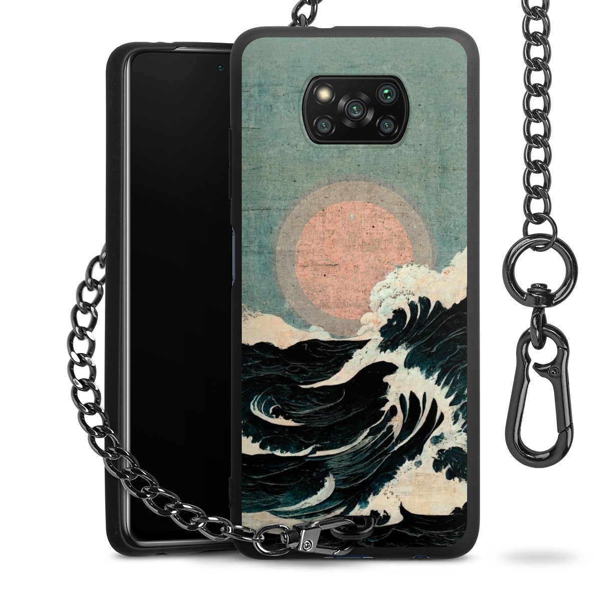 • Mattschwarze Handyhülle mit Metallkette