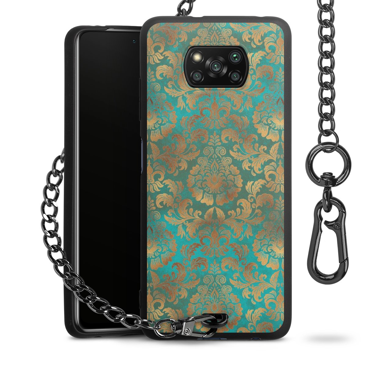 Die mattschwarze Silikon-Handyhülle besteht aus robustem TPU (thermoplastisches Polyurethan). Sie ist flexibel und schützt Dein Smartphone vor Stößen und Kratzern. Die Kette sowie der Karabinerhaken sind aus Metall in Gunmetal-Optik gefertigt. Für dieses Produkt kommen ausschließlich TÜV-geprüfte Materialien zum Einsatz.