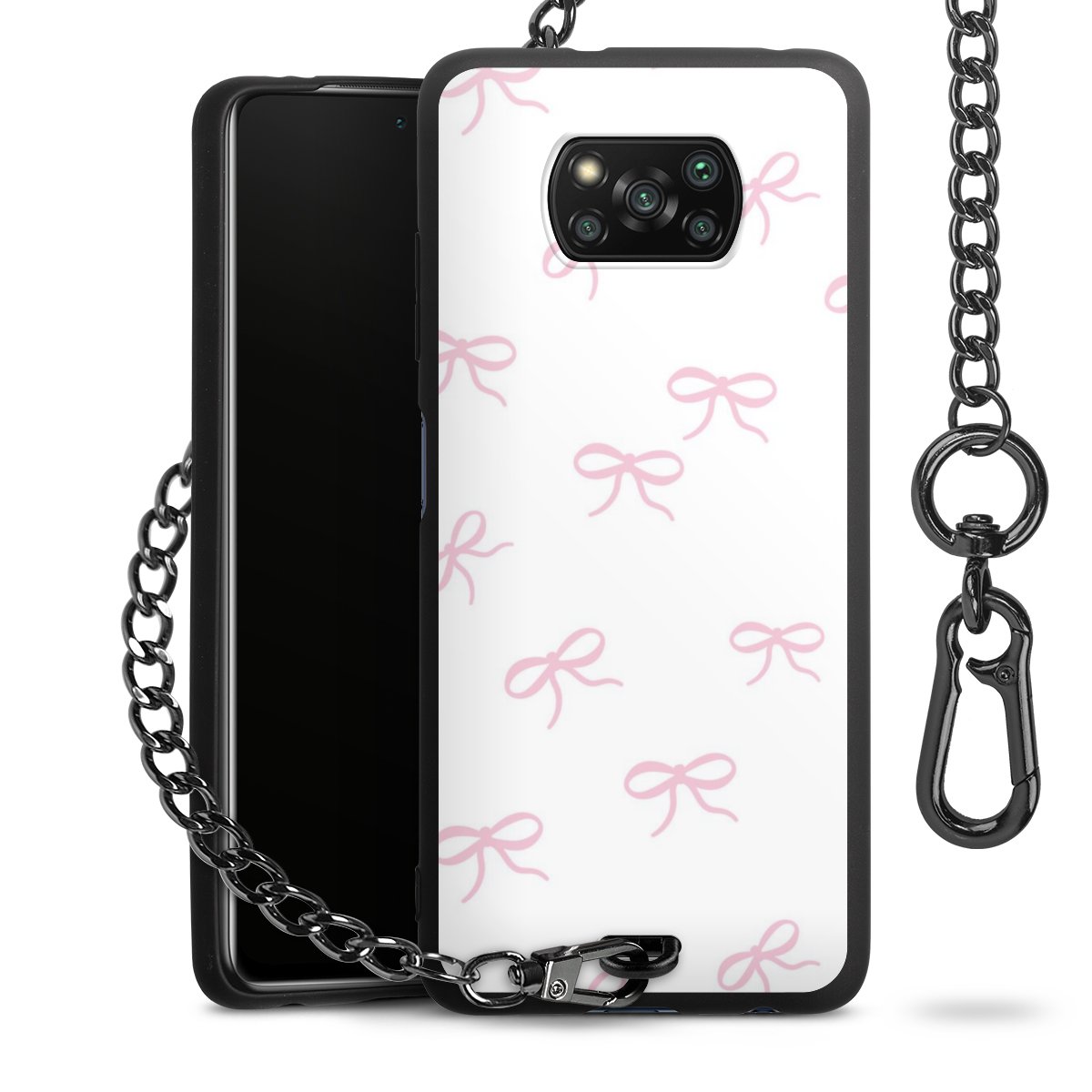 - Mattschwarze Handyhülle mit Metallkette