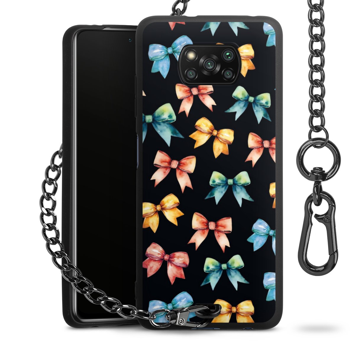 • Mattschwarze Handyhülle mit Metallkette
