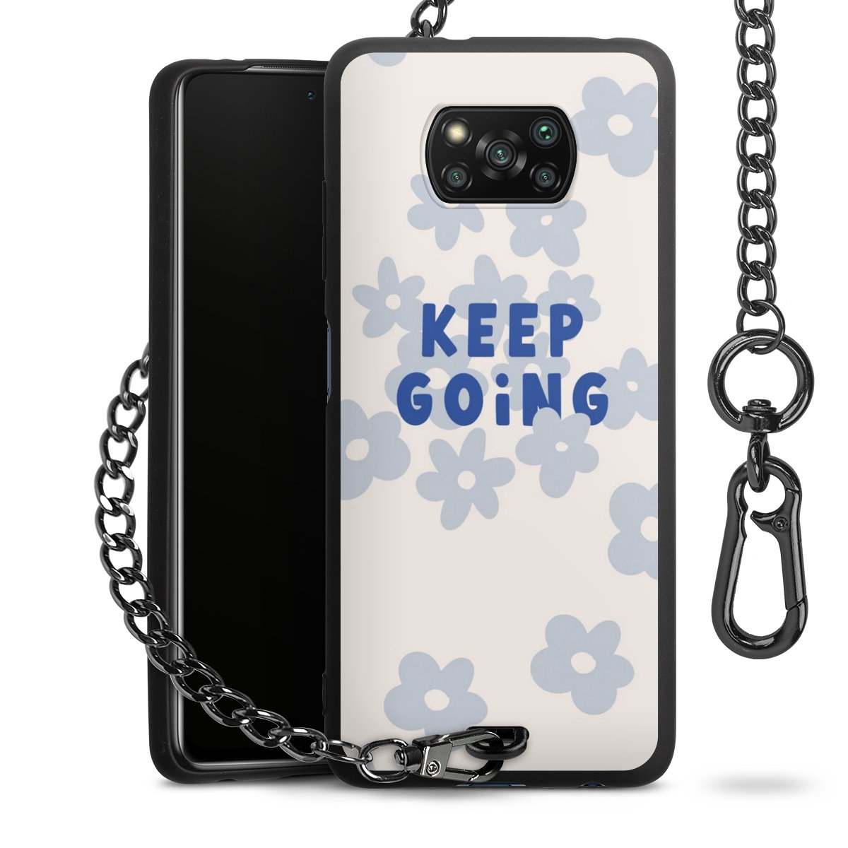 Die mattschwarze Silikon-Handyhülle besteht aus robustem TPU (thermoplastisches Polyurethan). Sie ist flexibel und schützt Dein Smartphone vor Stößen und Kratzern. Die Kette sowie der Karabinerhaken sind aus Metall in Gunmetal-Optik gefertigt. Für dieses Produkt kommen ausschließlich TÜV-geprüfte Materialien zum Einsatz.