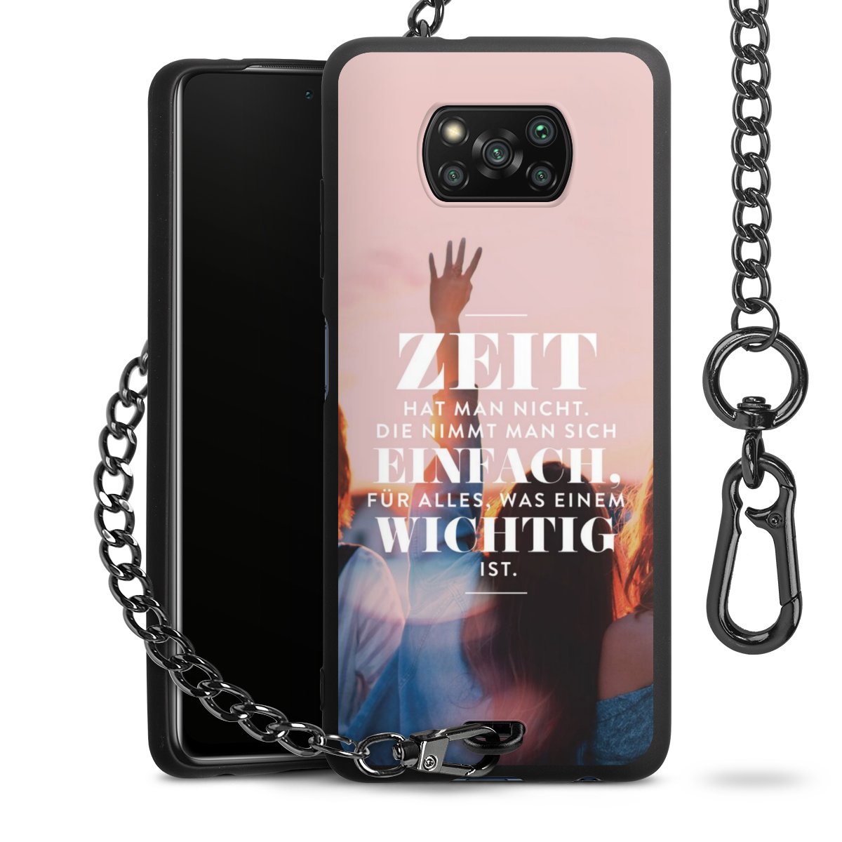 Die mattschwarze Silikon-Handyhülle besteht aus robustem TPU (thermoplastisches Polyurethan). Sie ist flexibel und schützt Dein Smartphone vor Stößen und Kratzern. Die Kette sowie der Karabinerhaken sind aus Metall in Gunmetal-Optik gefertigt. Für dieses Produkt kommen ausschließlich TÜV-geprüfte Materialien zum Einsatz.