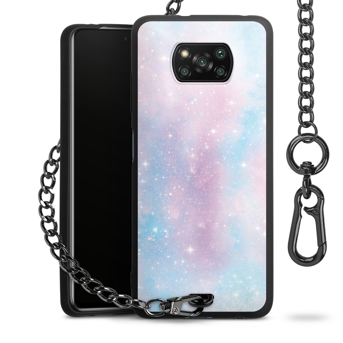 • Mattschwarze Handyhülle mit Metallkette