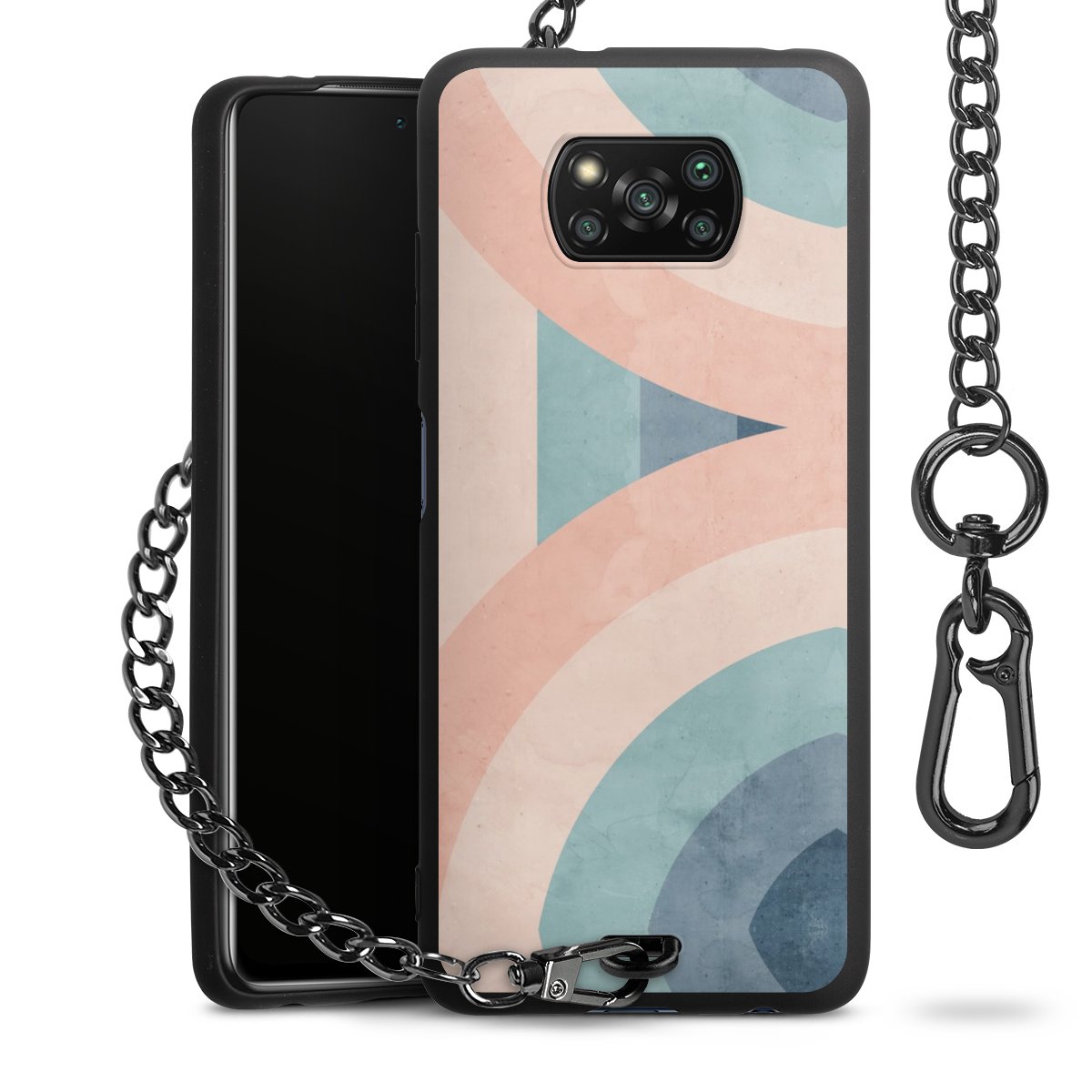 • Mattschwarze Handyhülle mit Metallkette