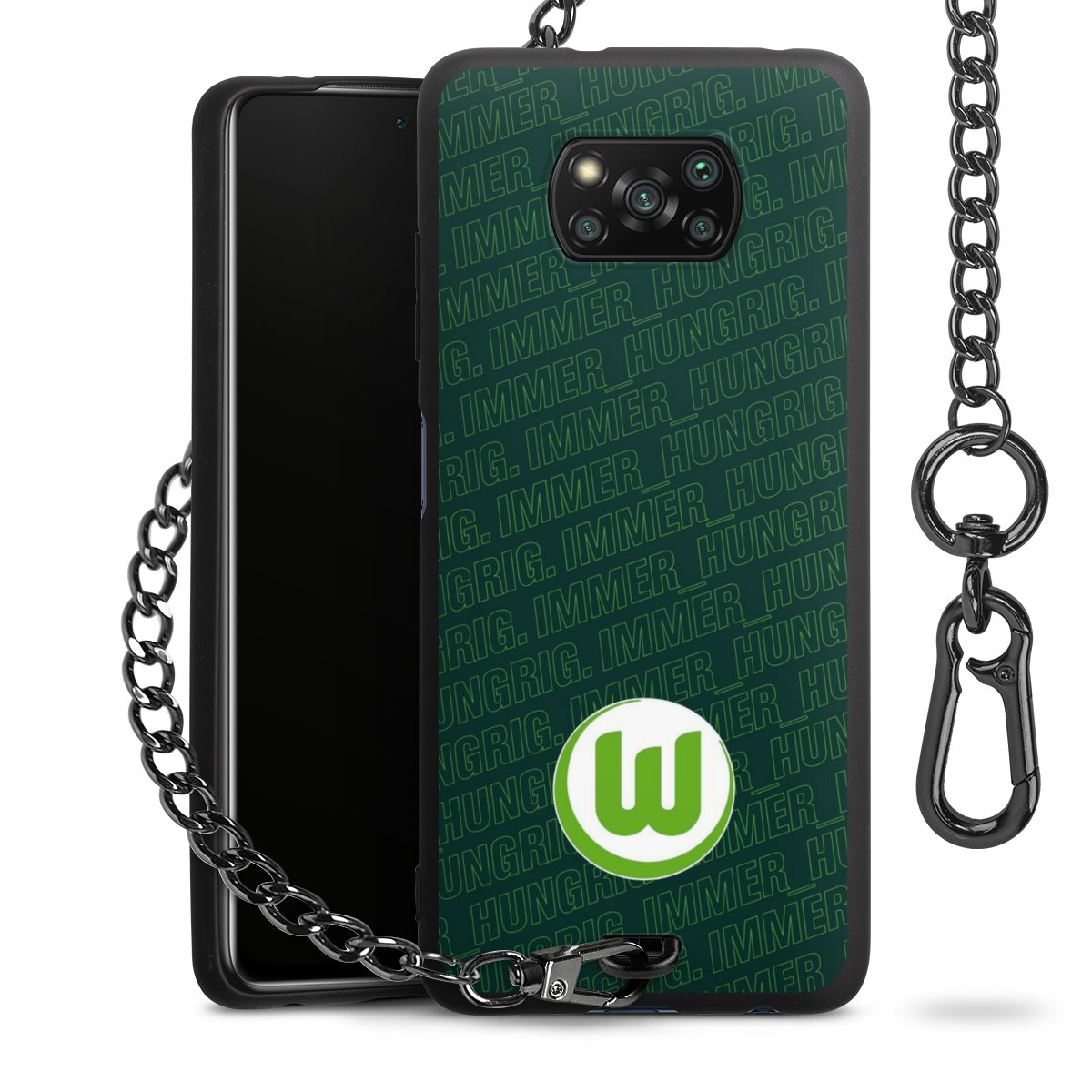 Die mattschwarze Silikon-Handyhülle besteht aus robustem TPU (thermoplastisches Polyurethan). Sie ist flexibel und schützt Dein Smartphone vor Stößen und Kratzern. Die Kette sowie der Karabinerhaken sind aus Metall in Gunmetal-Optik gefertigt. Für dieses Produkt kommen ausschließlich TÜV-geprüfte Materialien zum Einsatz.