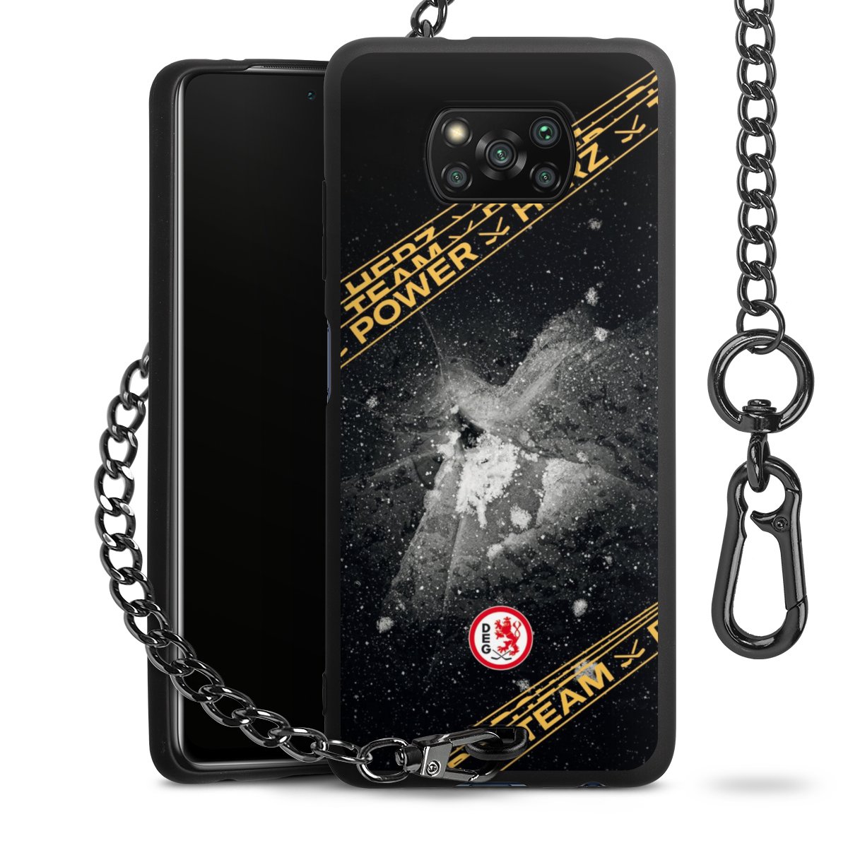 - Mattschwarze Handyhülle mit Metallkette