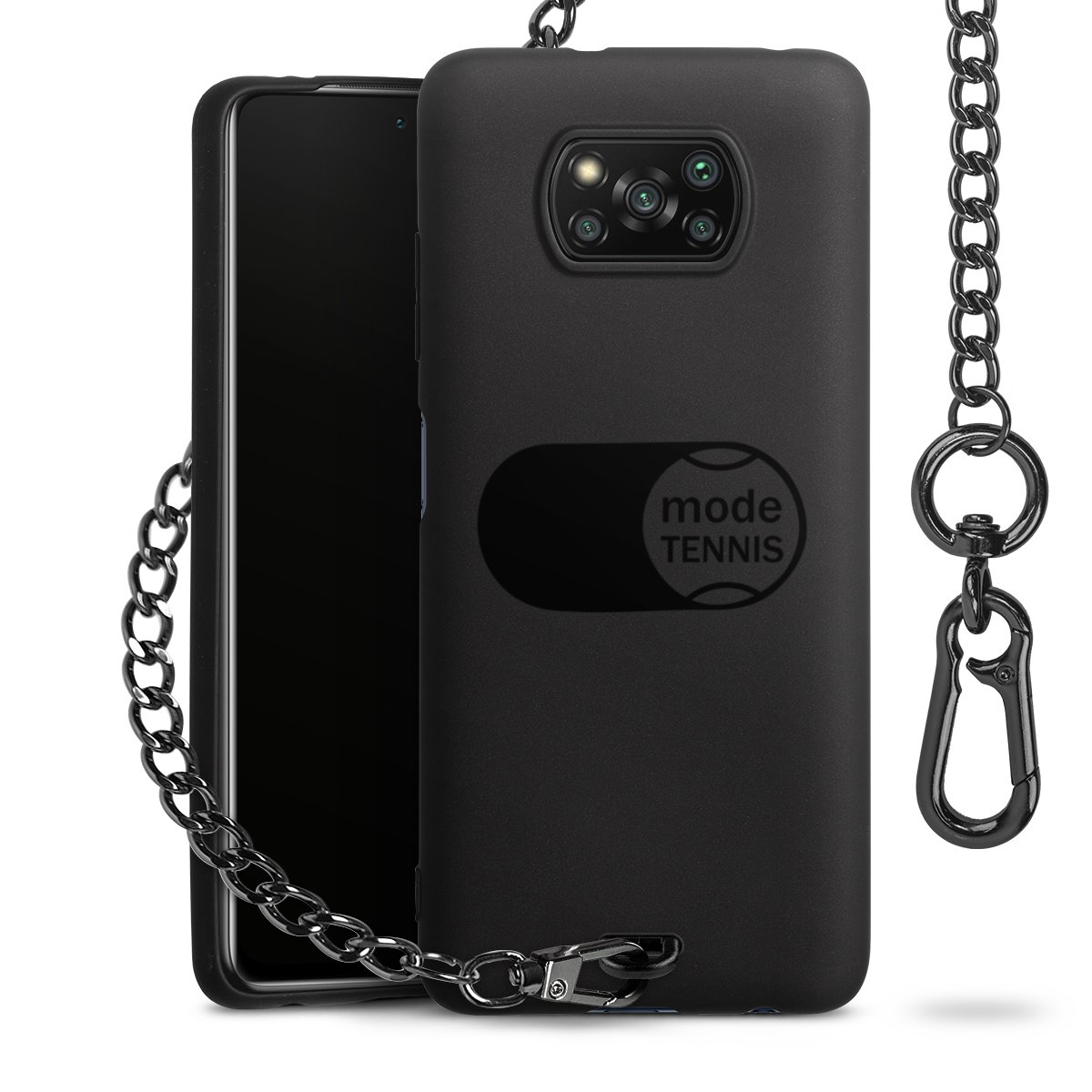 • Mattschwarze Handyhülle mit Metallkette