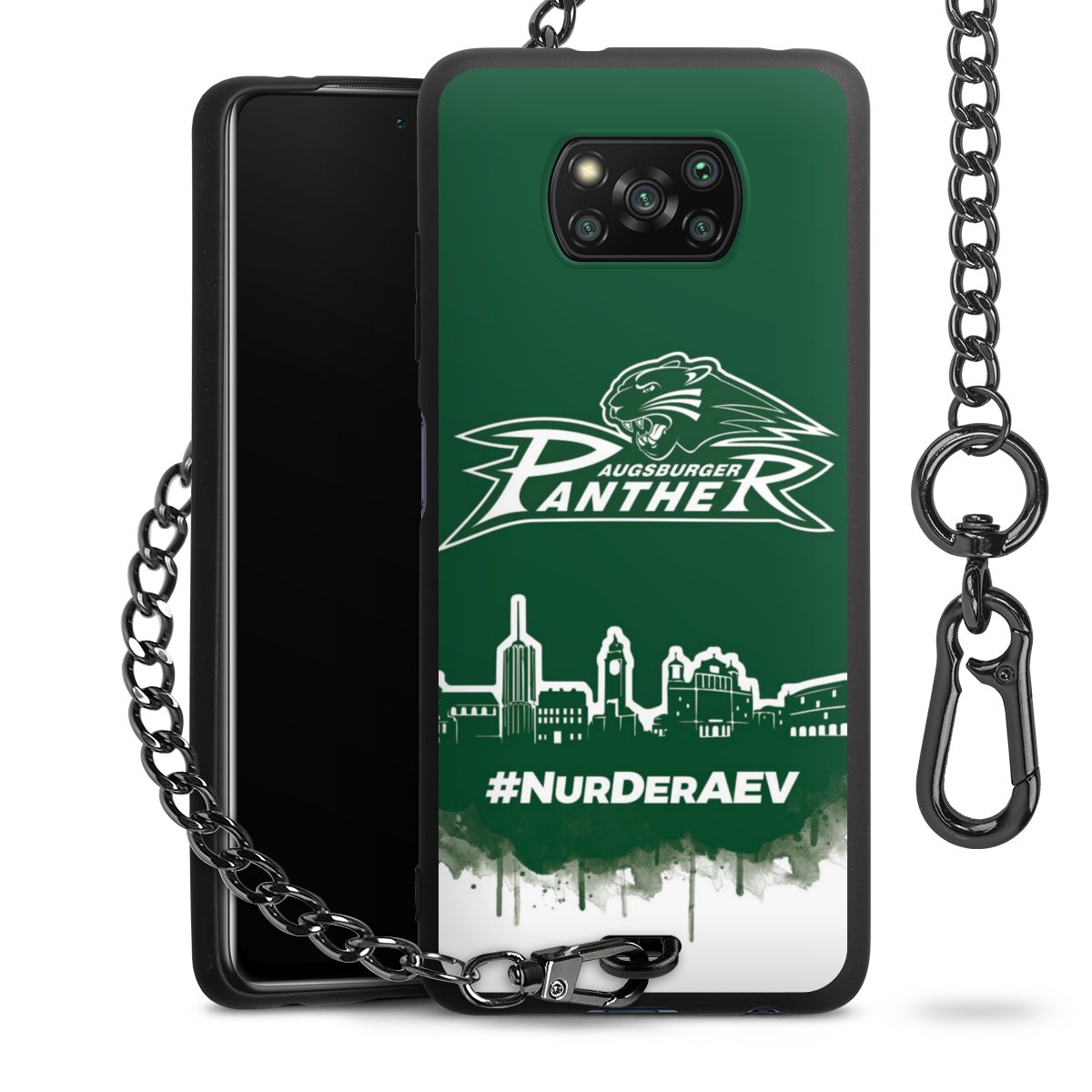 Die mattschwarze Silikon-Handyhülle besteht aus robustem TPU (thermoplastisches Polyurethan). Sie ist flexibel und schützt Dein Smartphone vor Stößen und Kratzern. Die Kette sowie der Karabinerhaken sind aus Metall in Gunmetal-Optik gefertigt. Für dieses Produkt kommen ausschließlich TÜV-geprüfte Materialien zum Einsatz.