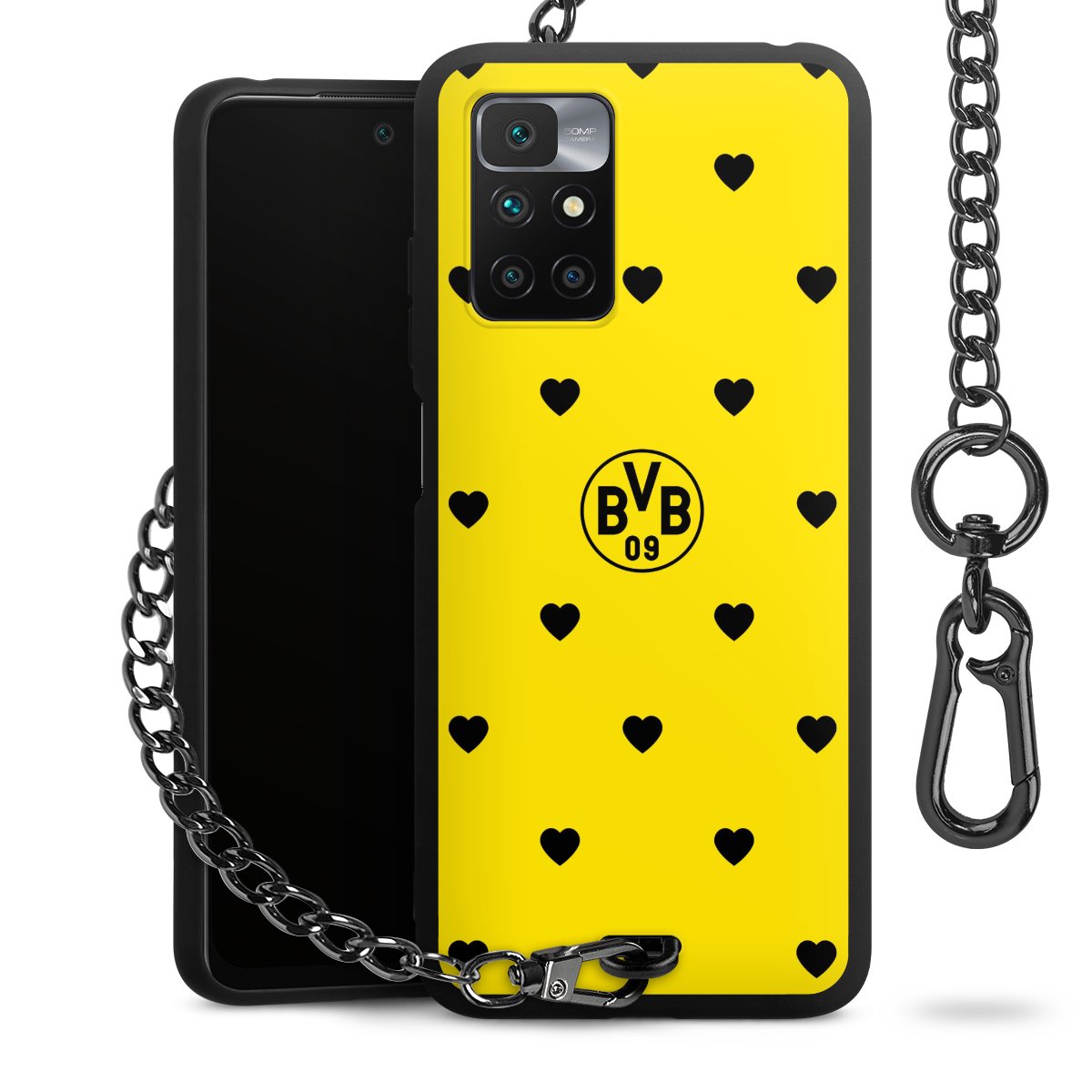 • Mattschwarze Handyhülle mit Metallkette