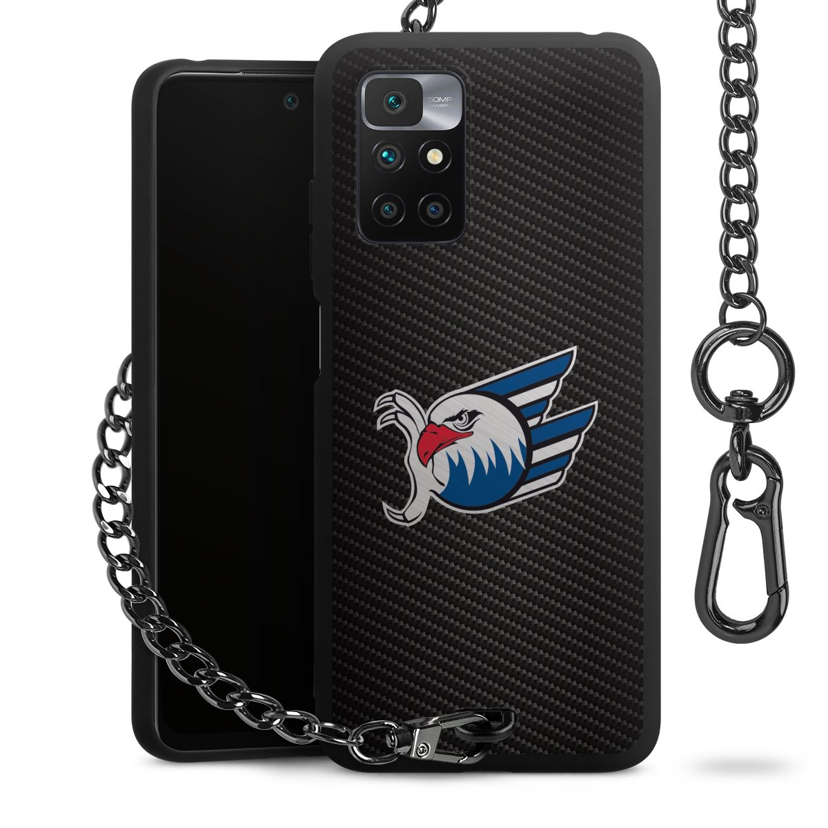• Mattschwarze Handyhülle mit Metallkette