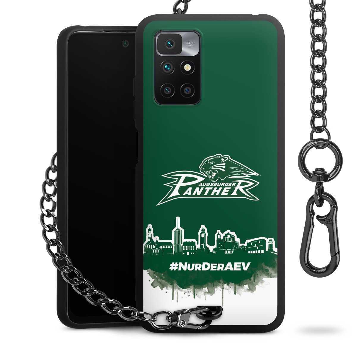 Die mattschwarze Silikon-Handyhülle besteht aus robustem TPU (thermoplastisches Polyurethan). Sie ist flexibel und schützt Dein Smartphone vor Stößen und Kratzern. Die Kette sowie der Karabinerhaken sind aus Metall in Gunmetal-Optik gefertigt. Für dieses Produkt kommen ausschließlich TÜV-geprüfte Materialien zum Einsatz.