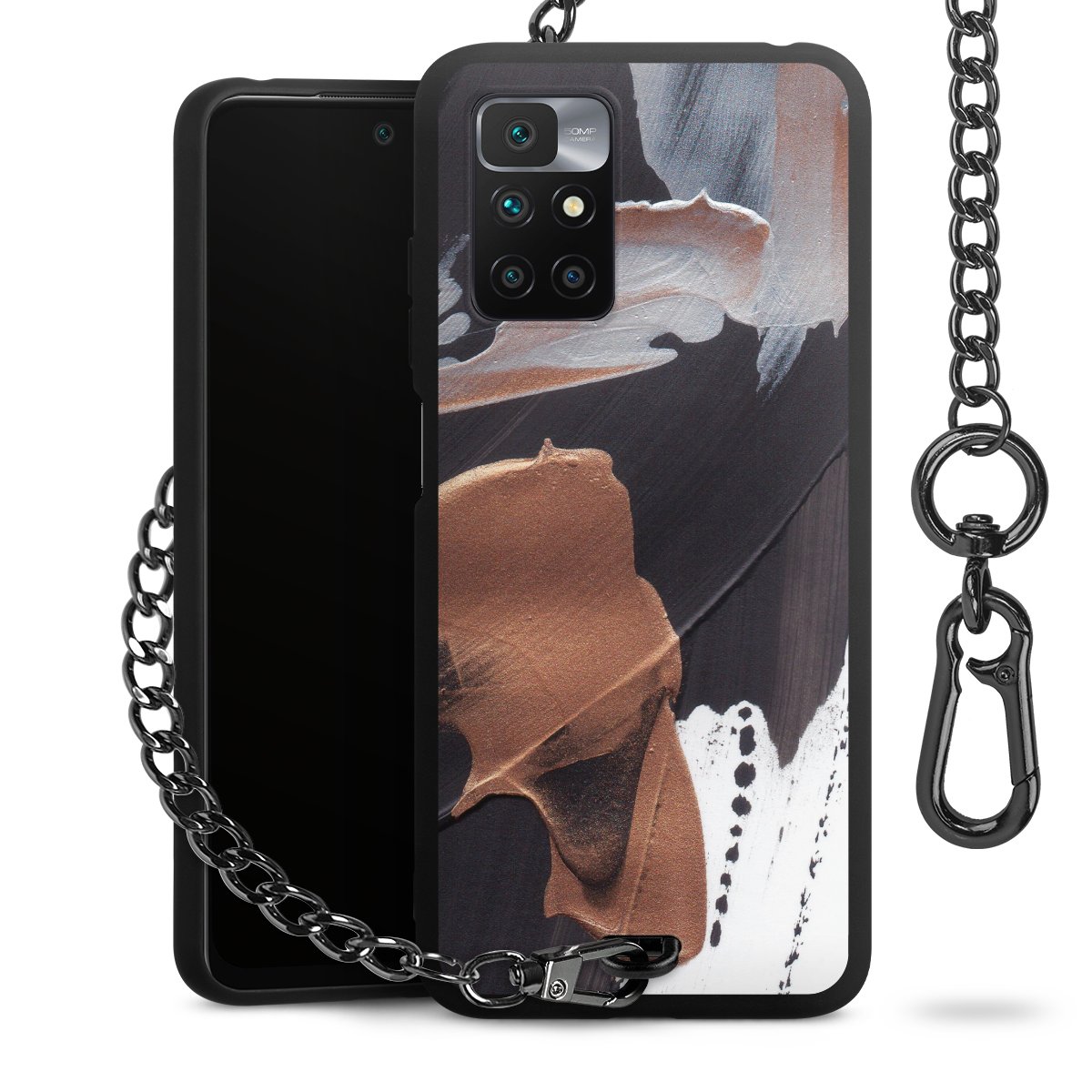 • Mattschwarze Handyhülle mit Metallkette