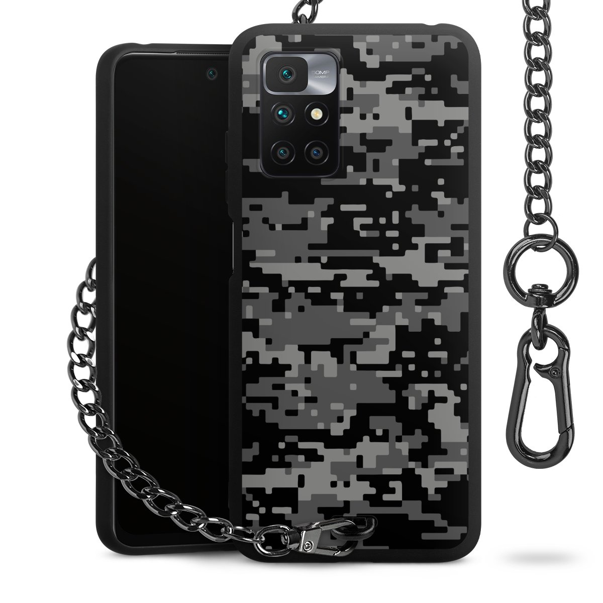 • Mattschwarze Handyhülle mit Metallkette