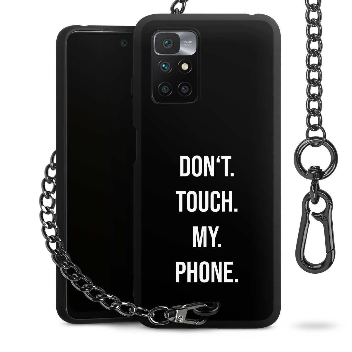 - Mattschwarze Handyhülle mit Metallkette