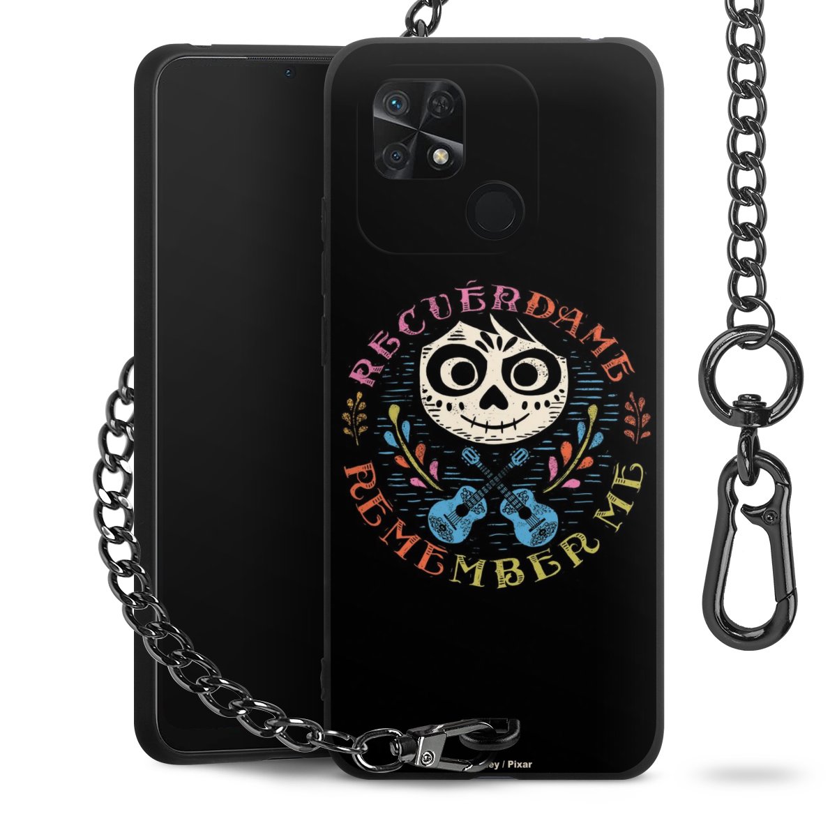 - Mattschwarze Handyhülle mit Metallkette