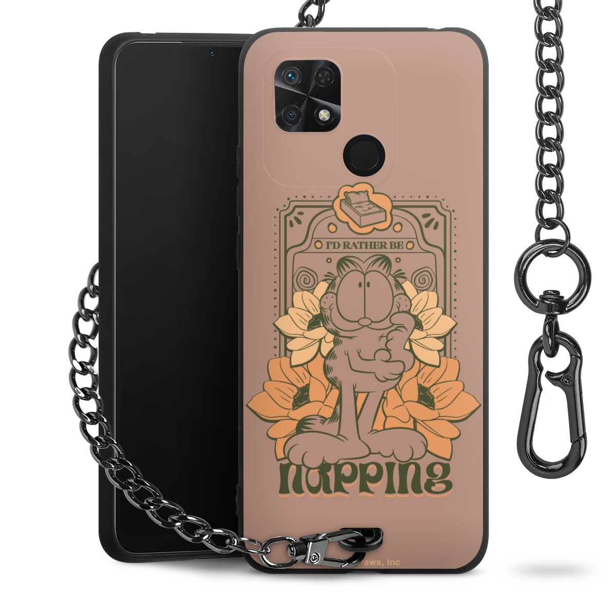 • Mattschwarze Handyhülle mit Metallkette