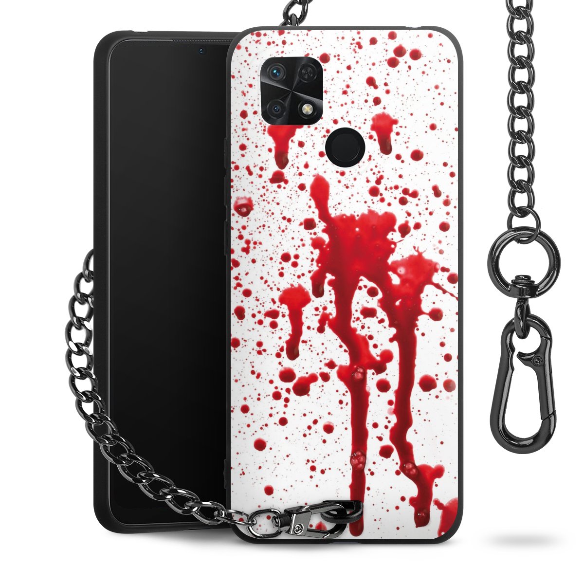 - Mattschwarze Handyhülle mit Metallkette