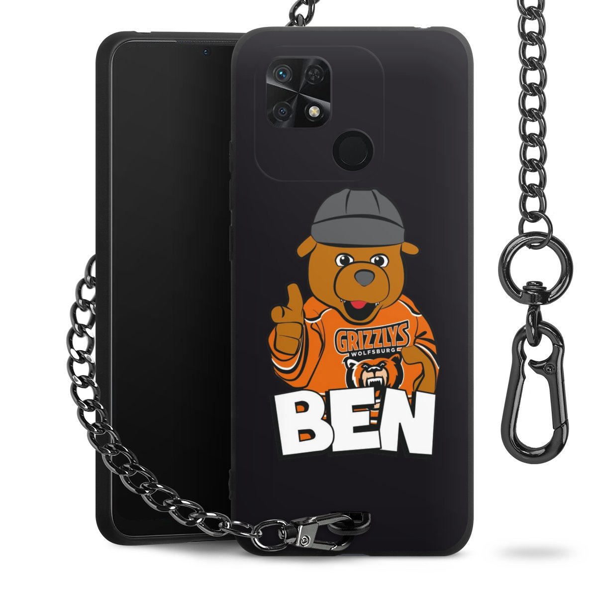 Die mattschwarze Silikon-Handyhülle besteht aus robustem TPU (thermoplastisches Polyurethan). Sie ist flexibel und schützt Dein Smartphone vor Stößen und Kratzern. Die Kette sowie der Karabinerhaken sind aus Metall in Gunmetal-Optik gefertigt. Für dieses Produkt kommen ausschließlich TÜV-geprüfte Materialien zum Einsatz.