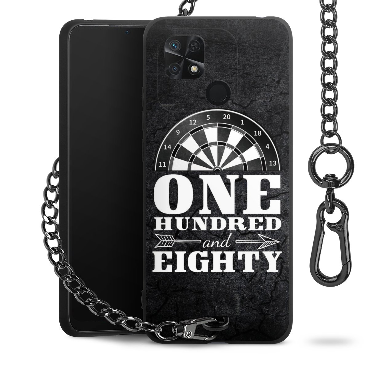 - Mattschwarze Handyhülle mit Metallkette