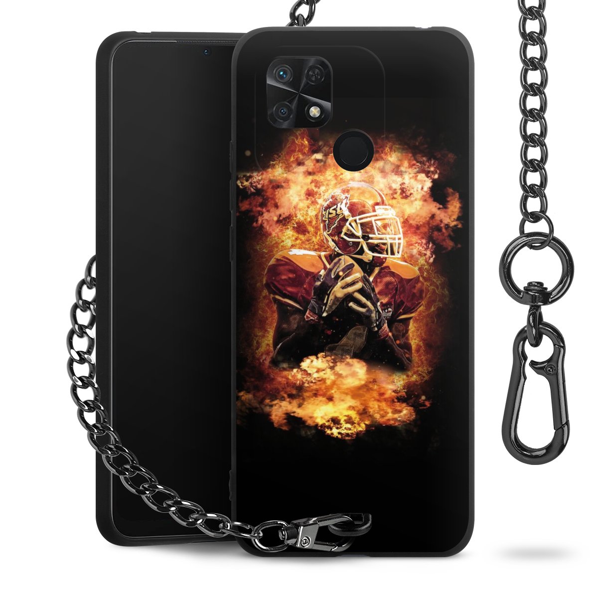 • Mattschwarze Handyhülle mit Metallkette