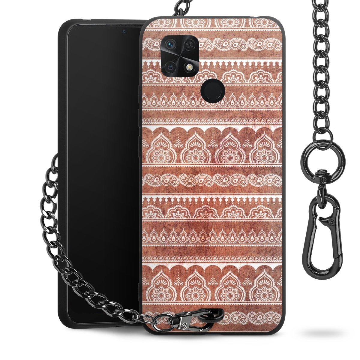 • Mattschwarze Handyhülle mit Metallkette