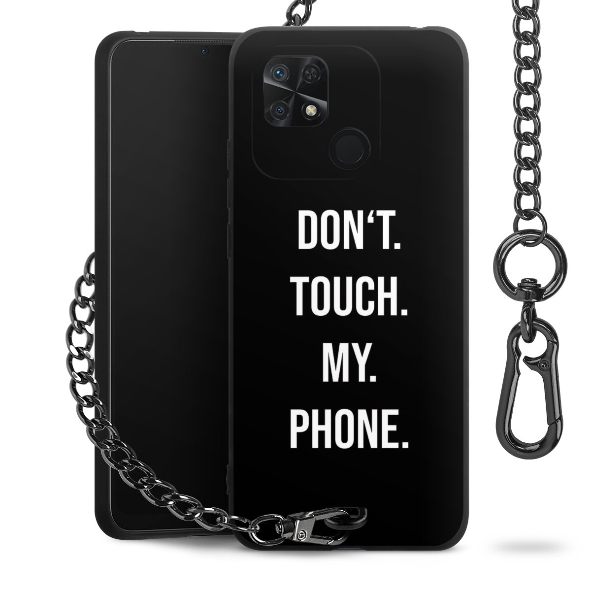 - Mattschwarze Handyhülle mit Metallkette
