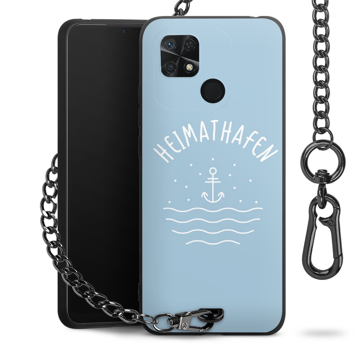 Die mattschwarze Silikon-Handyhülle besteht aus robustem TPU (thermoplastisches Polyurethan). Sie ist flexibel und schützt Dein Smartphone vor Stößen und Kratzern. Die Kette sowie der Karabinerhaken sind aus Metall in Gunmetal-Optik gefertigt. Für dieses Produkt kommen ausschließlich TÜV-geprüfte Materialien zum Einsatz.