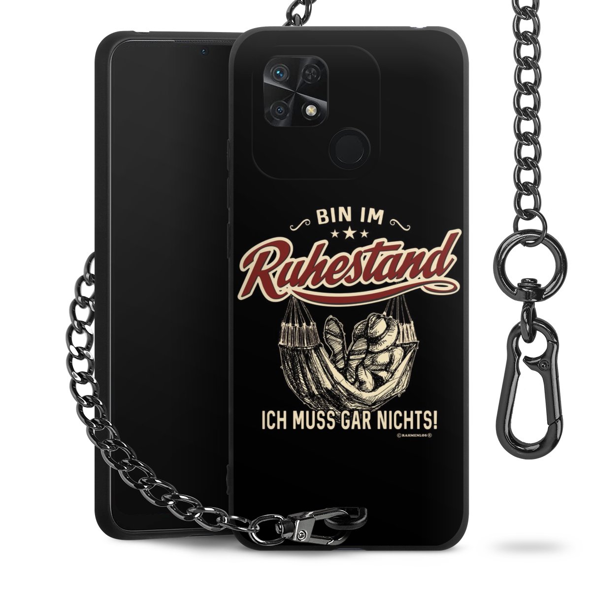 Die mattschwarze Silikon-Handyhülle besteht aus robustem TPU (thermoplastisches Polyurethan). Sie ist flexibel und schützt Dein Smartphone vor Stößen und Kratzern. Die Kette sowie der Karabinerhaken sind aus Metall in Gunmetal-Optik gefertigt. Für dieses Produkt kommen ausschließlich TÜV-geprüfte Materialien zum Einsatz.