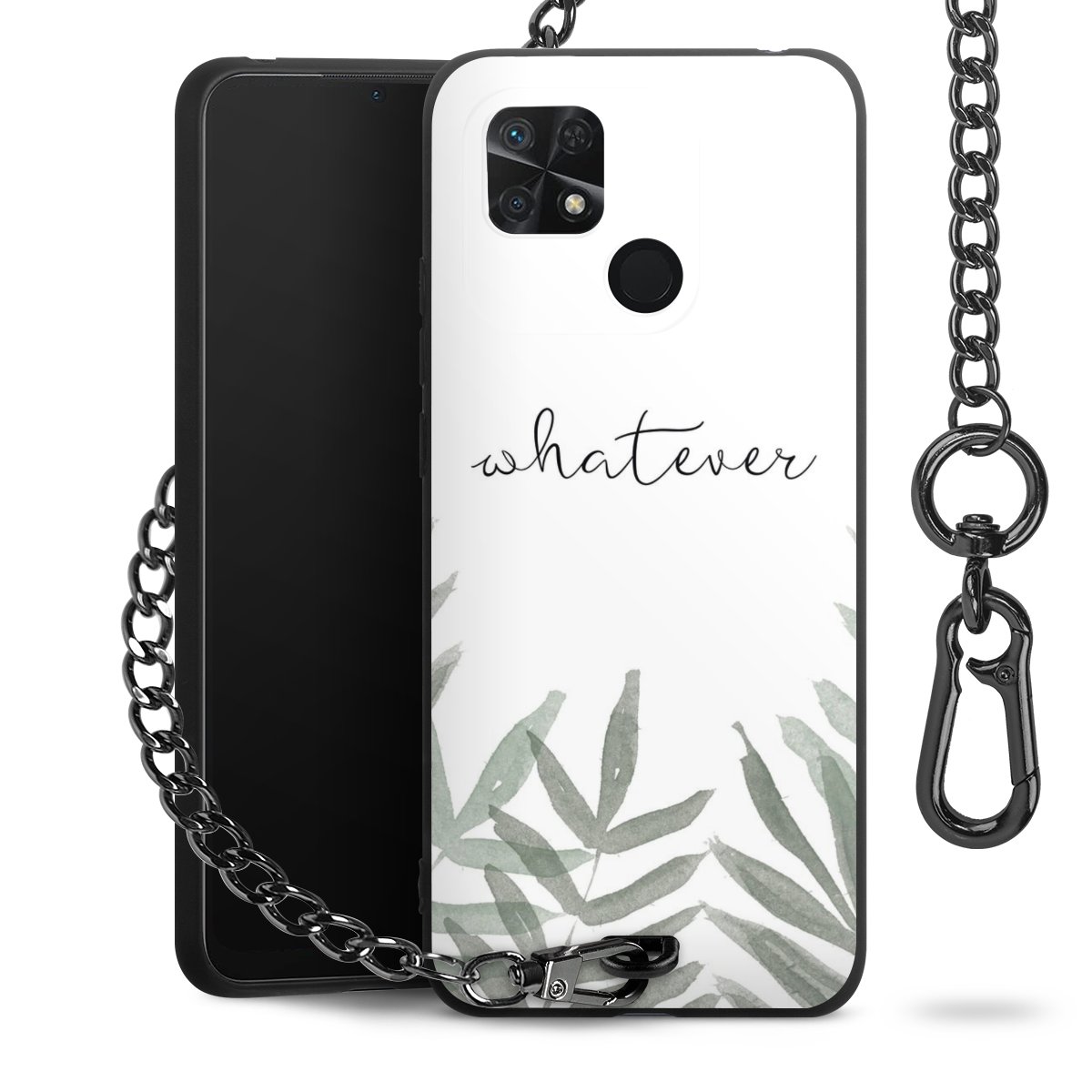 • Mattschwarze Handyhülle mit Metallkette