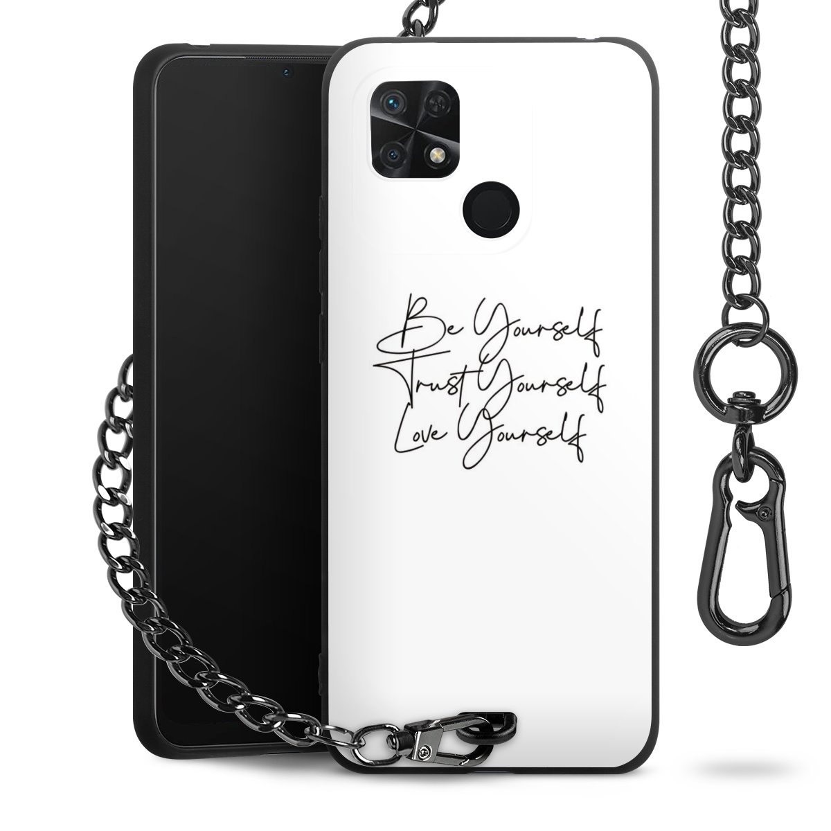 • Mattschwarze Handyhülle mit Metallkette
