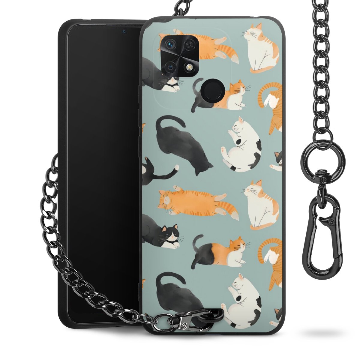 • Mattschwarze Handyhülle mit Metallkette